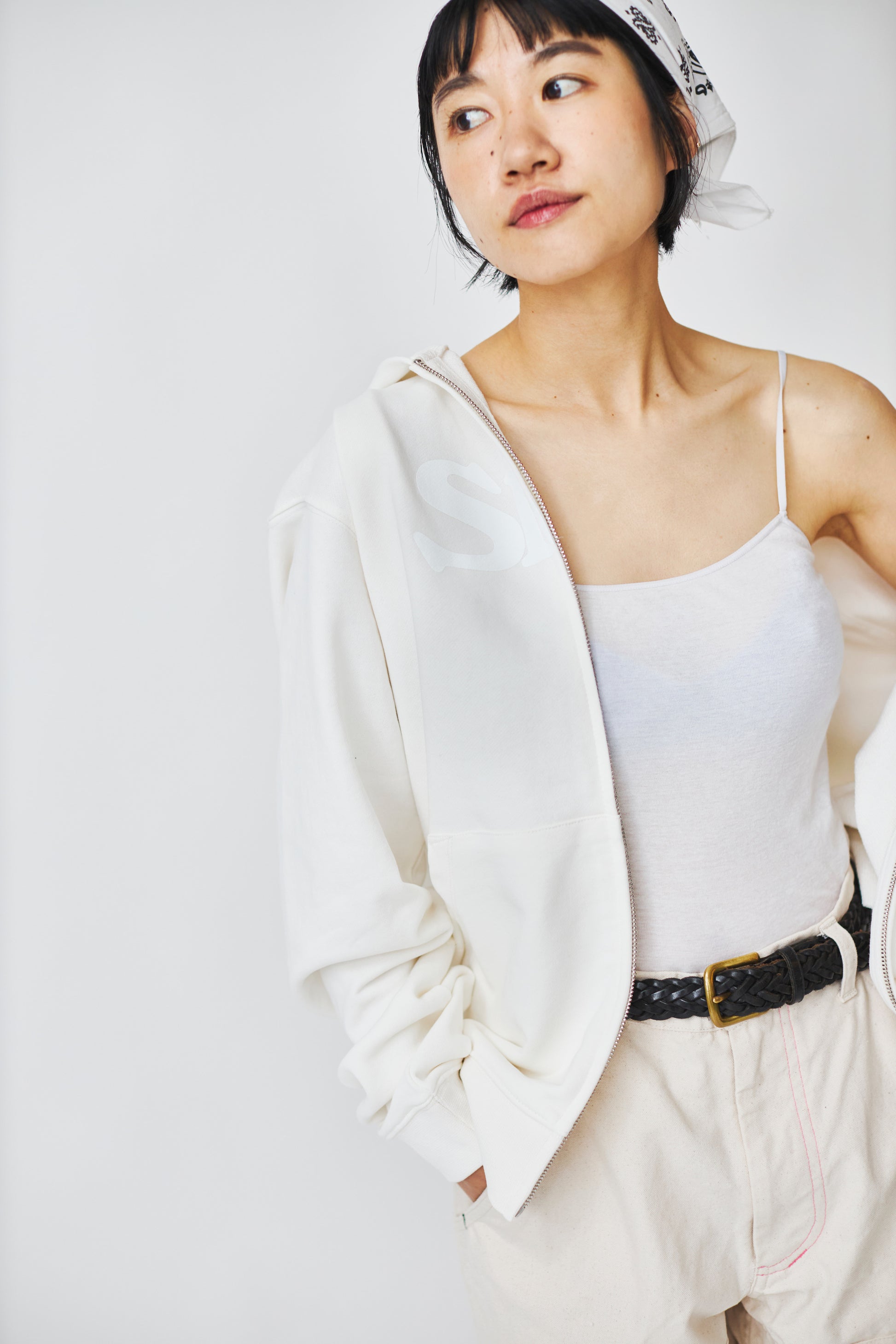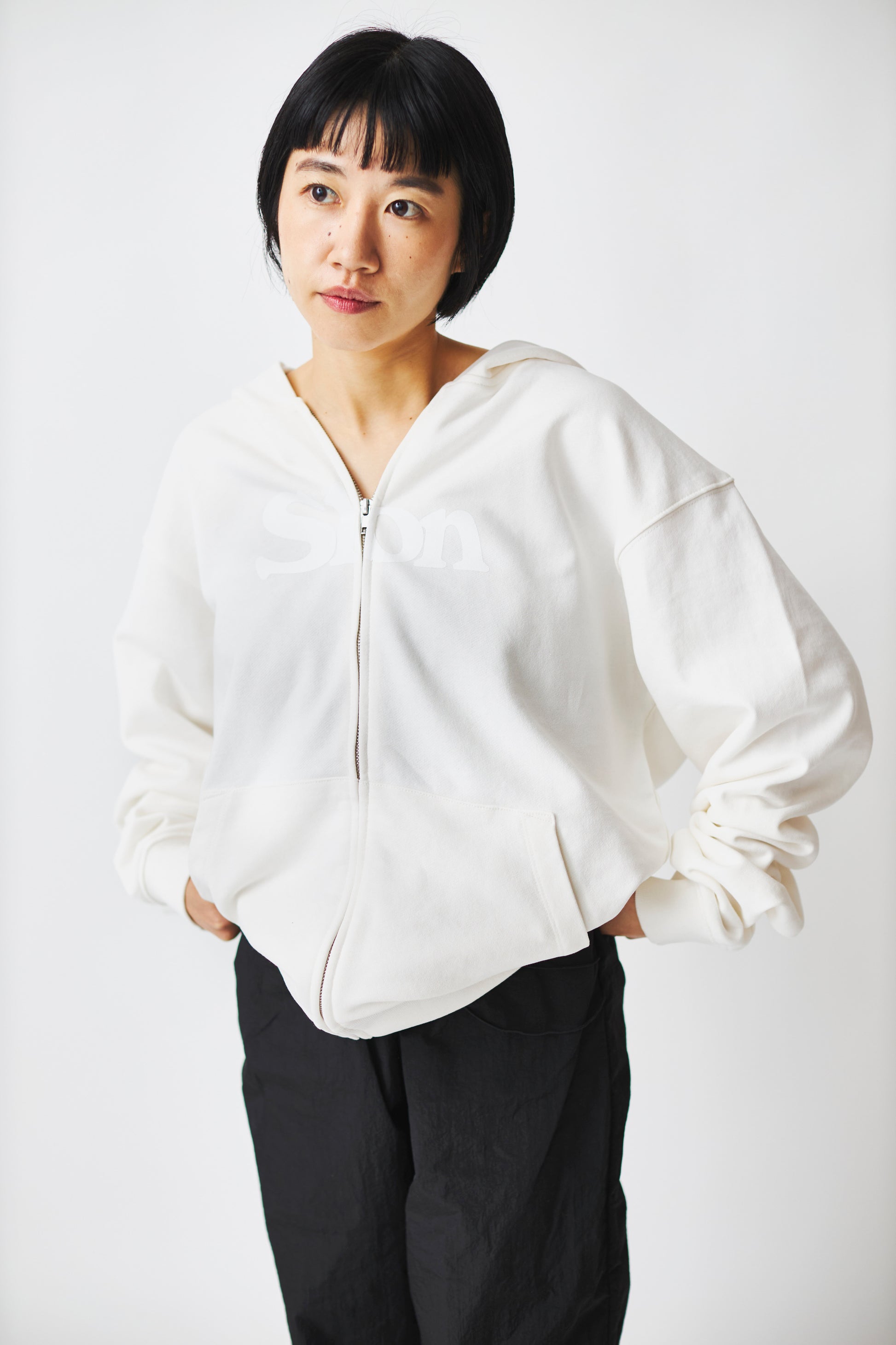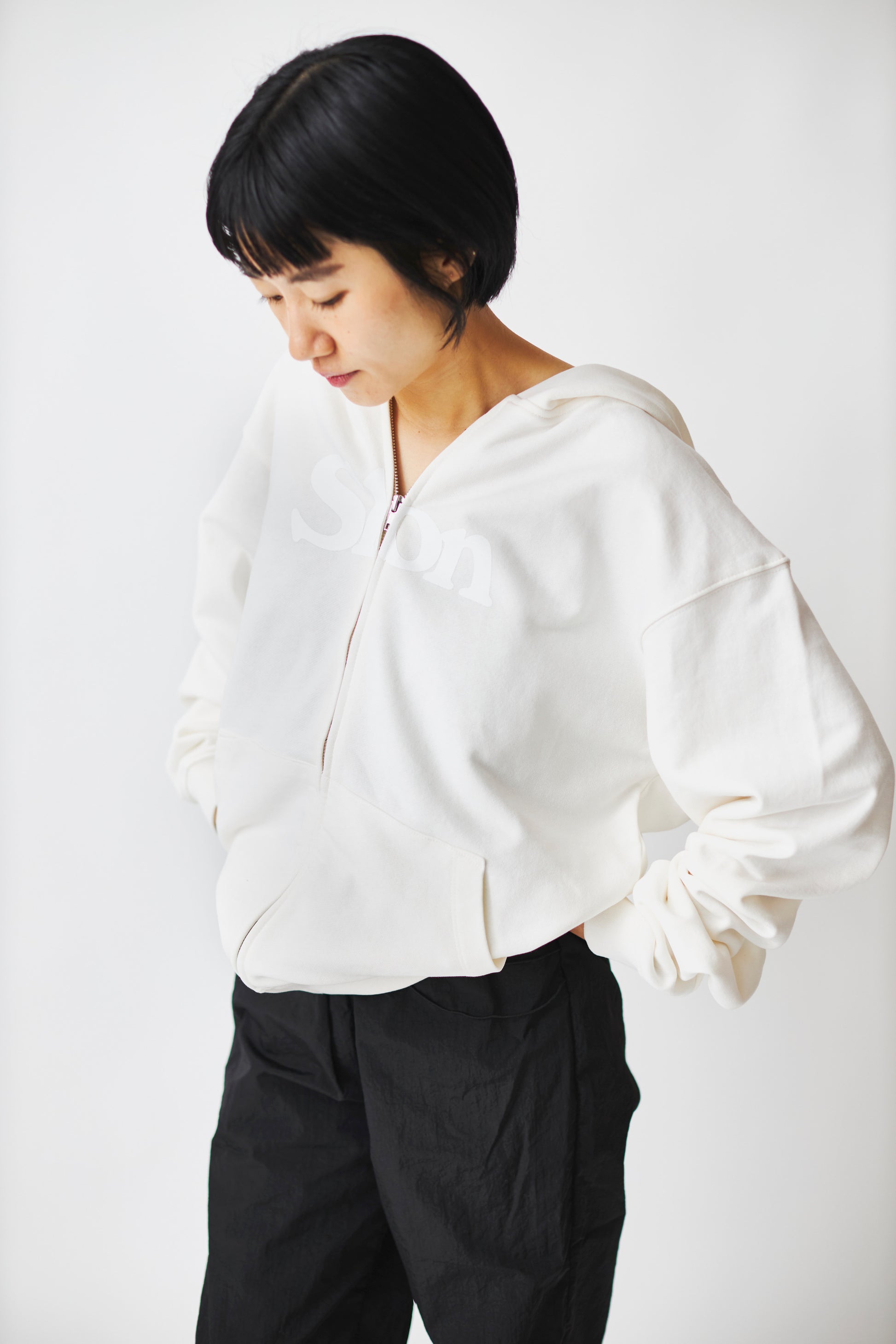 Slon Basic Full Zip Hoodie - White